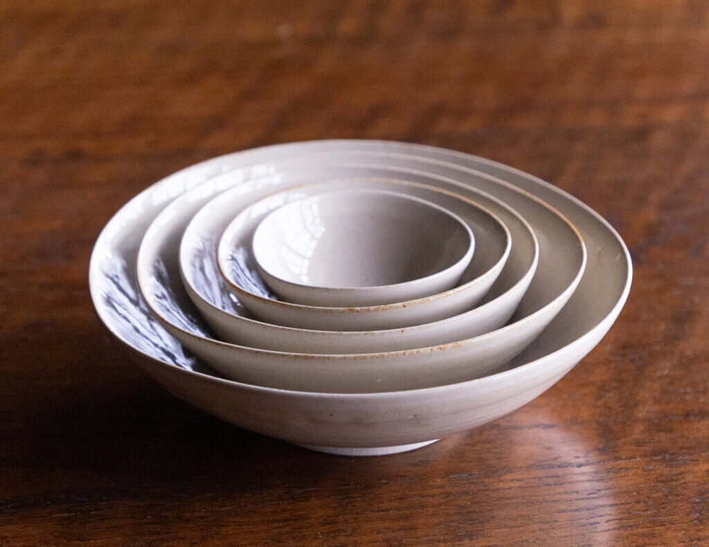 初めての個展は25歳のとき、富山県護国神社の華山亭にて4日間開催した。茶器や花器など相当数を出展したが、ほぼ完売の盛況ぶりだった。ながく「家業として手伝っている意識」だった陽さんにとって、一人の陶芸家を自覚した出来事だったろう。制作は「頭に描いたデザインをまずは形に」。そこから実際に焼き上がった食器類などは、使ってみて寸法や形、釉薬などを調整し、理想に近づけるというのが彼女の作陶のスタイルだ。