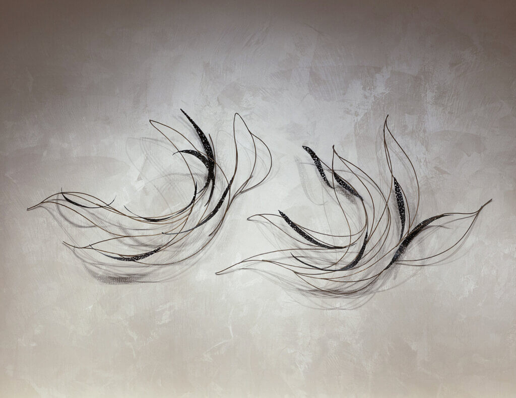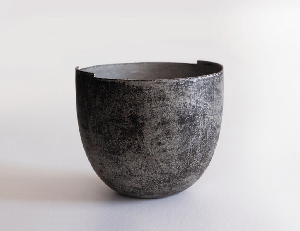 維さんの眼差しは、金属が持つ時間軸にも向けられている。経年変化していく様は、まるでイキモノのようだという。強靭な素材であるからこそ、脆さを孕んだ造形から強さを纏う表現までを自在に操ることができる。また手を通した証として、ひずみや不均一さはあえて消さないなど、独自の感性を持って制作する。制作中のハプニングは次の課題として、新たな形を生み出す要素と前向きに受け止め、それも自分の作品らしさになると考えている。そこには、金属造形に対する厚い信頼と愛情が垣間見える。